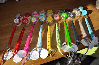Abwaschbürsteli aus Holz, bemalt mit Produkten von